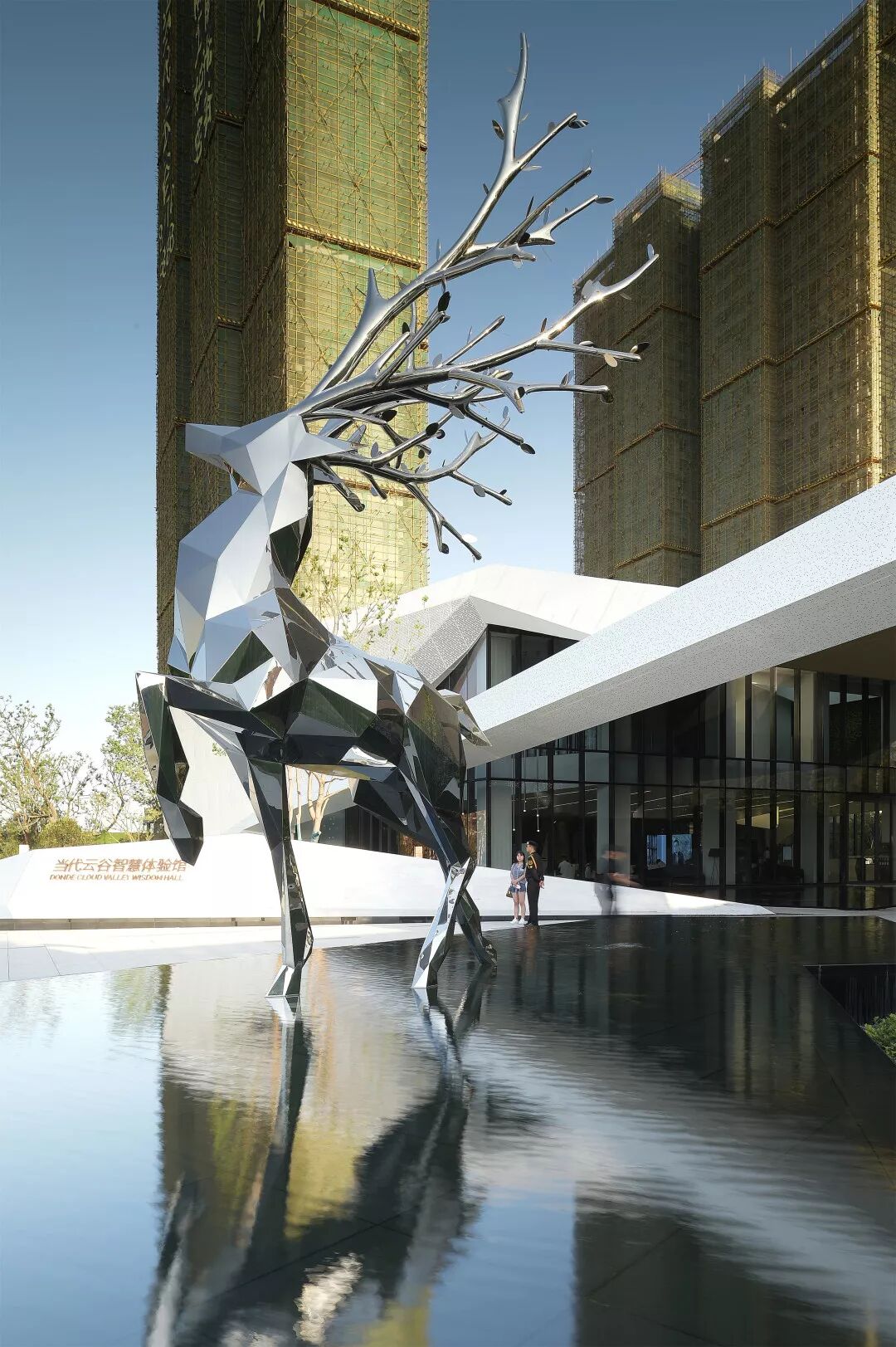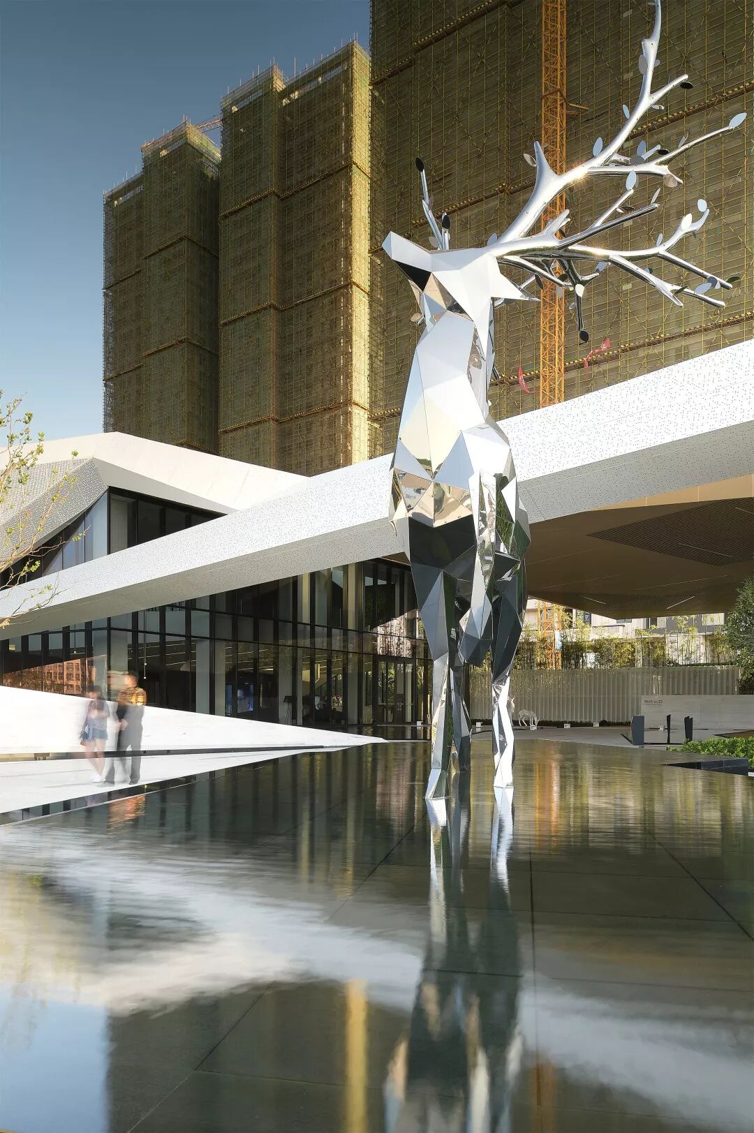 In this project, we welcome our guests with a set of deer themed installation artworks. The sculptures can give impressive memories to every visitor entering the site, and with irregular facets that can reflect everything nearby, they become the highlights of the entire space.