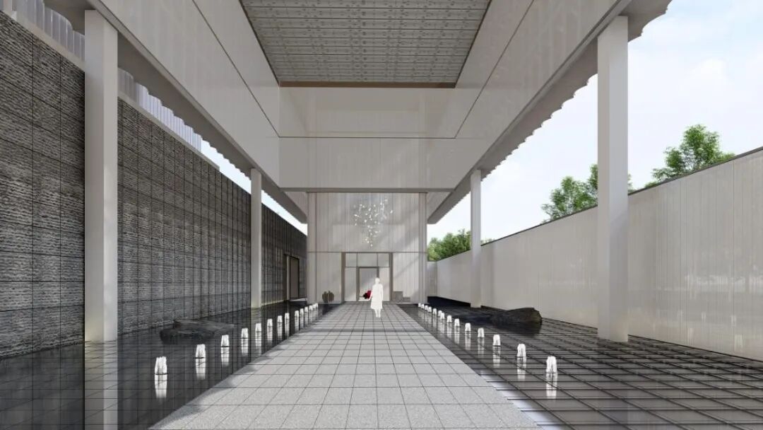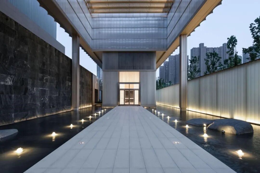 Following the quiet path into the light courtyard, you can see a modern structure with a style of palace in Tang Dynasty. The 16M overhang space and 40M long experience moving line run through with light and shadow as the axis, and the architecture and landscape are inseparable. The experience of this moment is more spiritual and enlightening.