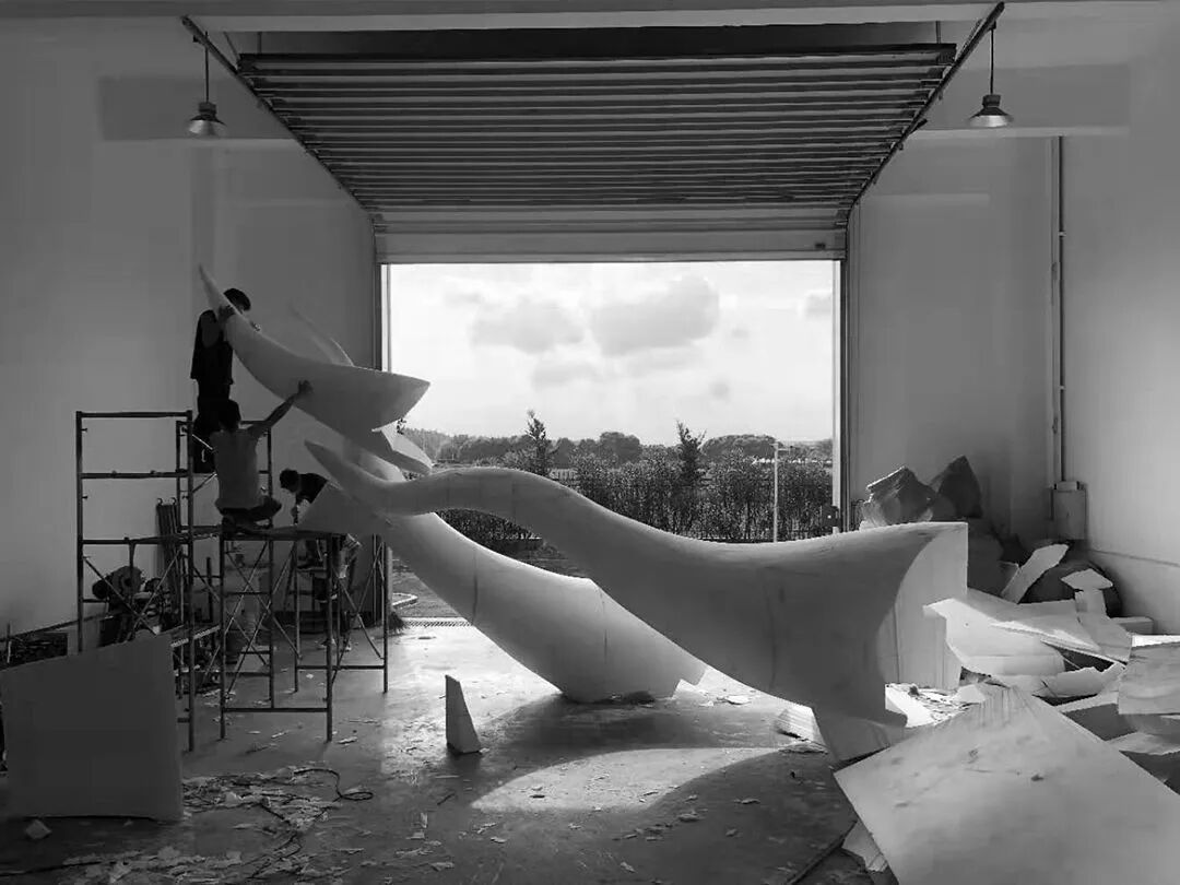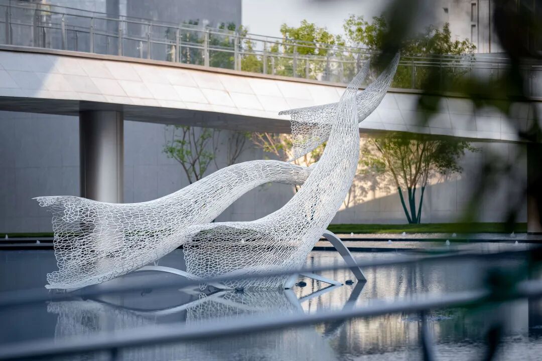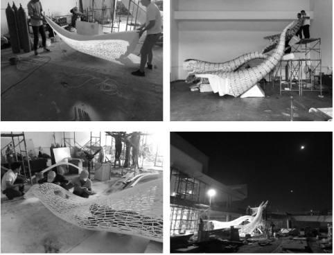 The whole production process experienced molding and coating and stainless steel welding on the billets. While controlling the large shape, the project polishes the details and focuses on the direct dialogue between the artist and the material. The texture of the material and the welding texture formed in the welding process are also the key factors of final form of the work. The intended presentation of metal welded sculptures is difficult to be achieved by sculptures made of other materials. It is particularly worth mentioning that in this design, flexible images are created with stiff stainless steel, giving the sculpture softness, rigidity and a unique charm.