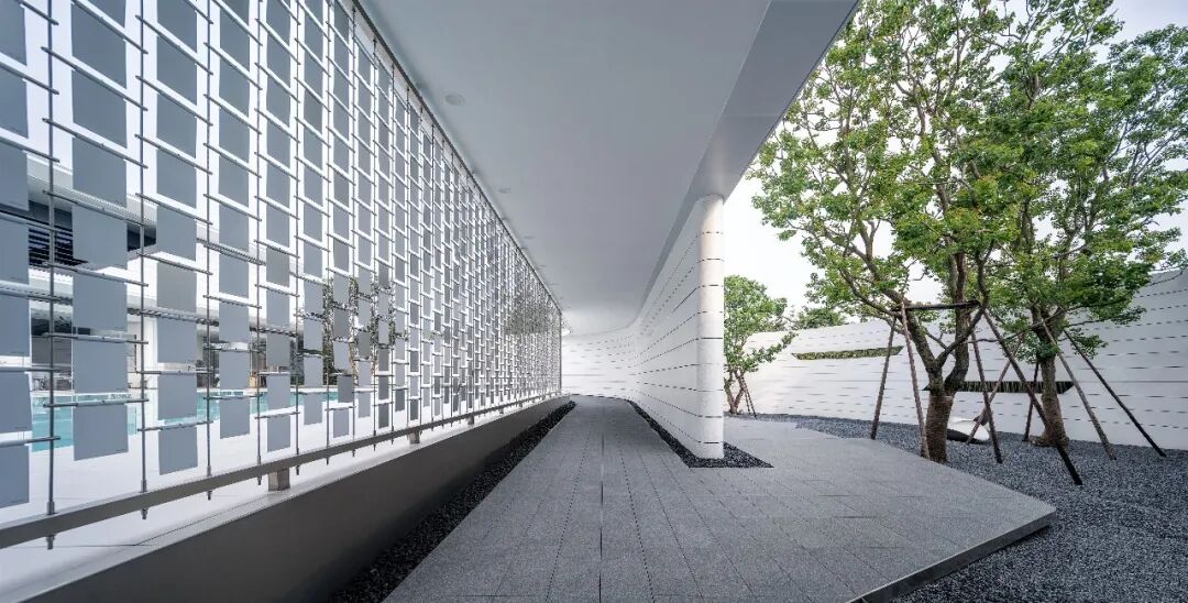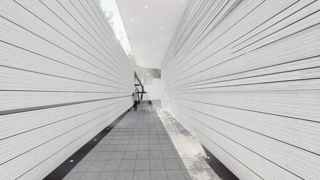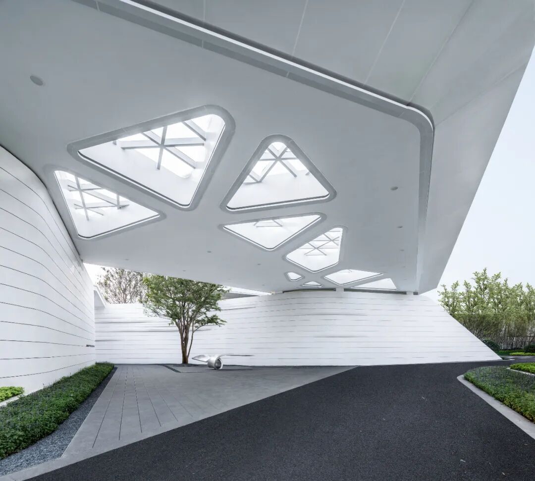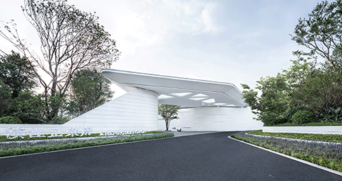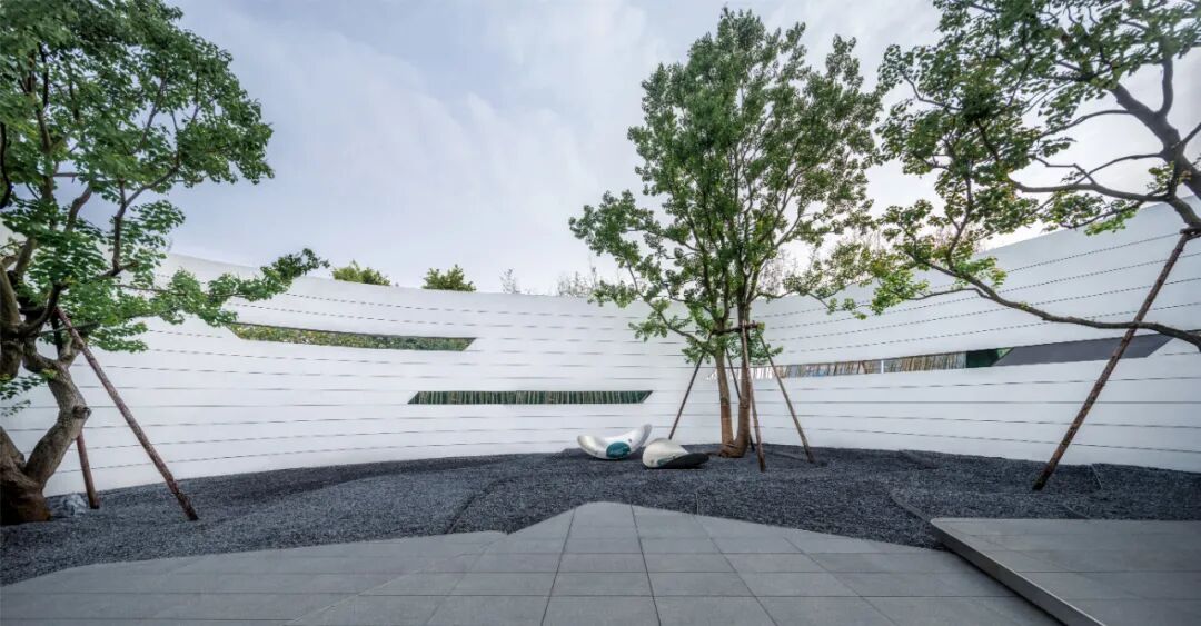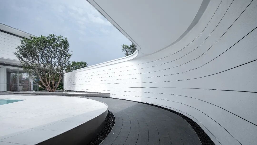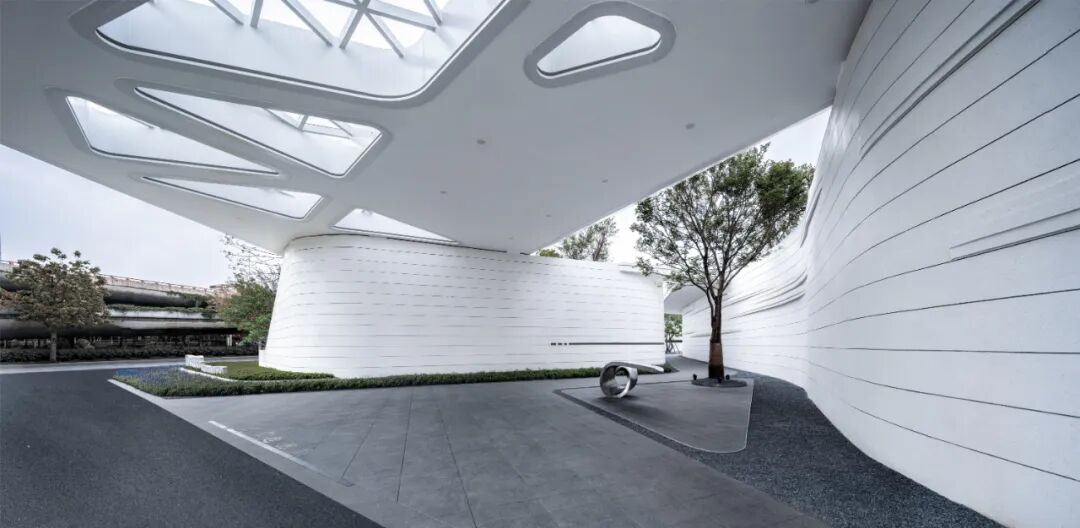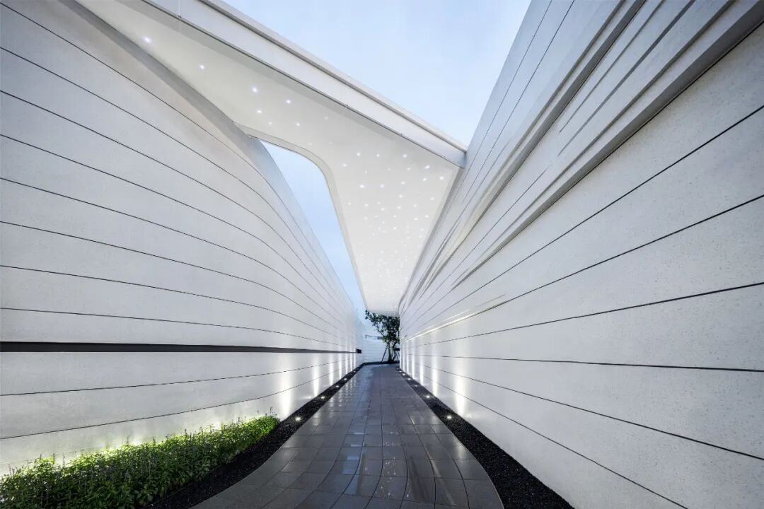 When using white material, designers often need to use the texture effect of the material itself to highlight the natural texture and natural concave-convex feeling of the texture coating, so as to achieve a vivid effect. The streamlined surface is pure and flowing, while all these features emphasize the abstract and unified form of the overall design, creating a flowing space to act as a guide line for the landscape.