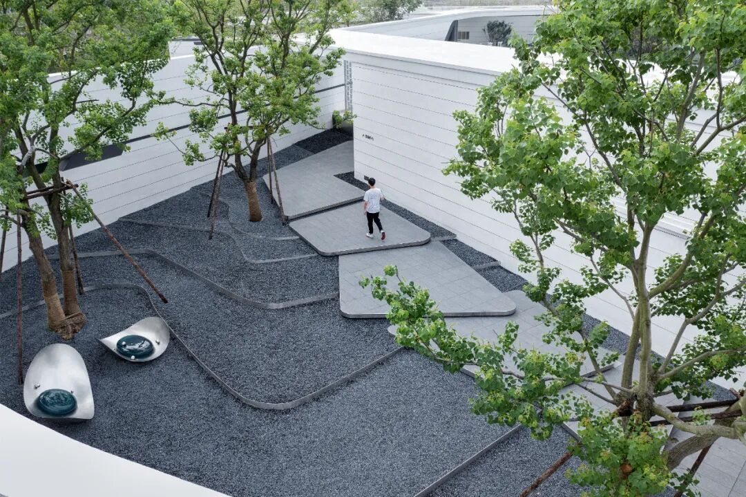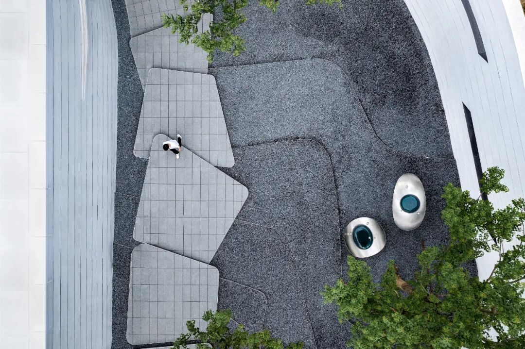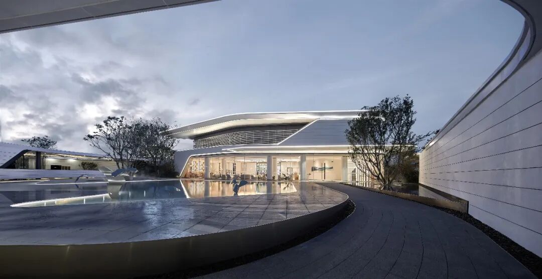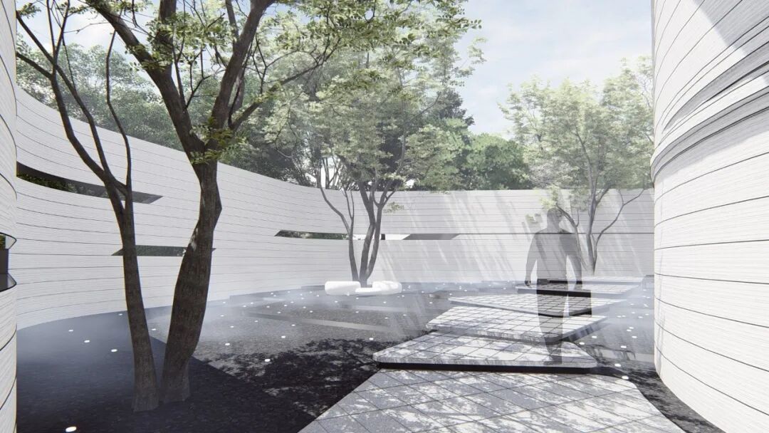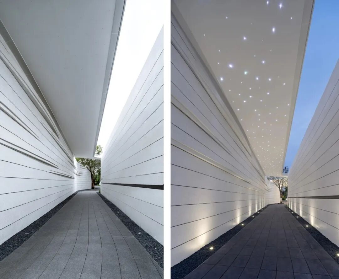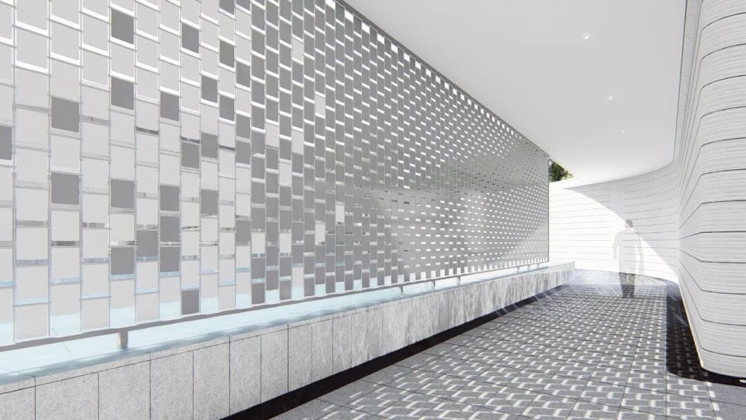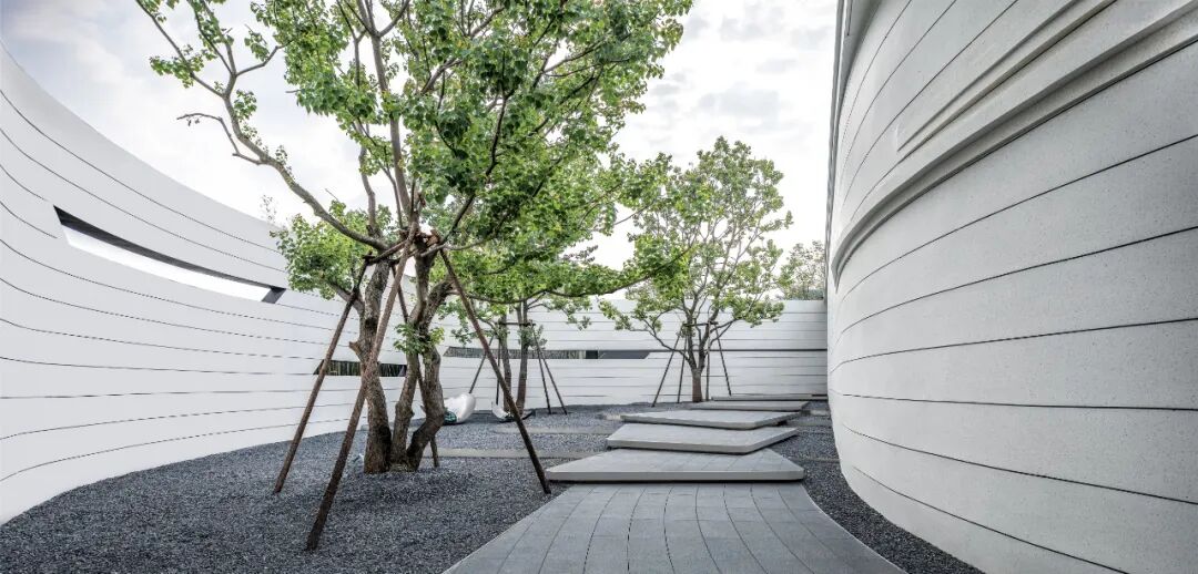 When using white material, designers often need to use the texture effect of the material itself to highlight the natural texture and natural concave-convex feeling of the texture coating, so as to achieve a vivid effect. The streamlined surface is pure and flowing, while all these features emphasize the abstract and unified form of the overall design, creating a flowing space to act as a guide line for the landscape.