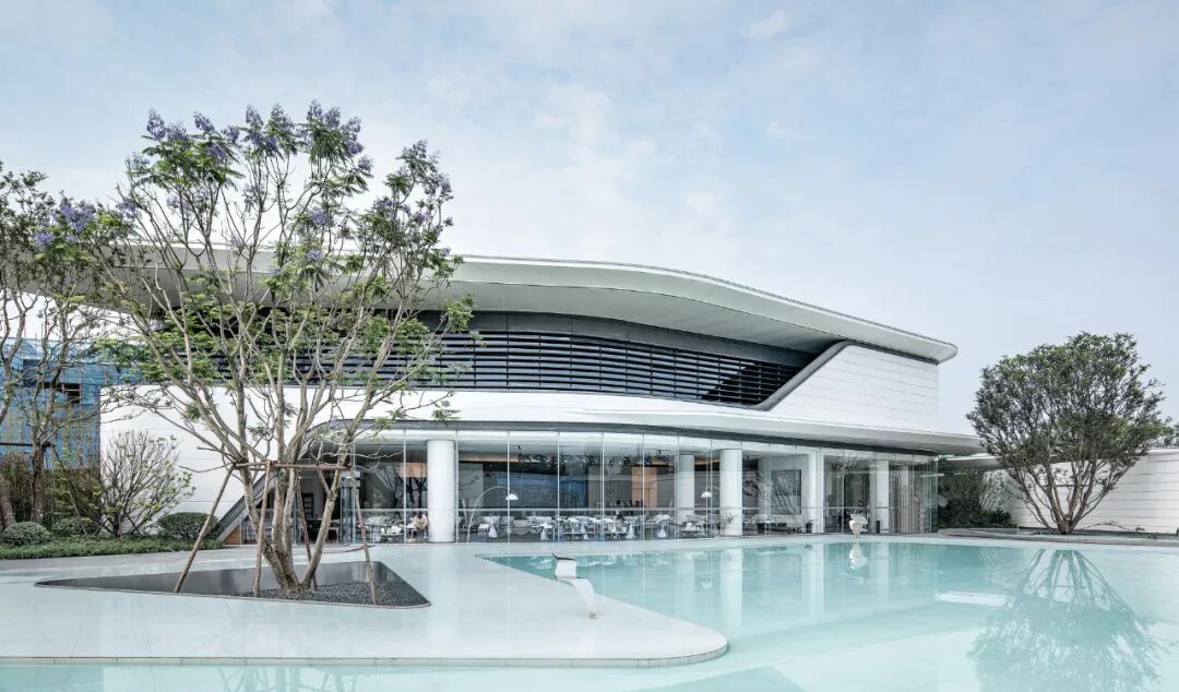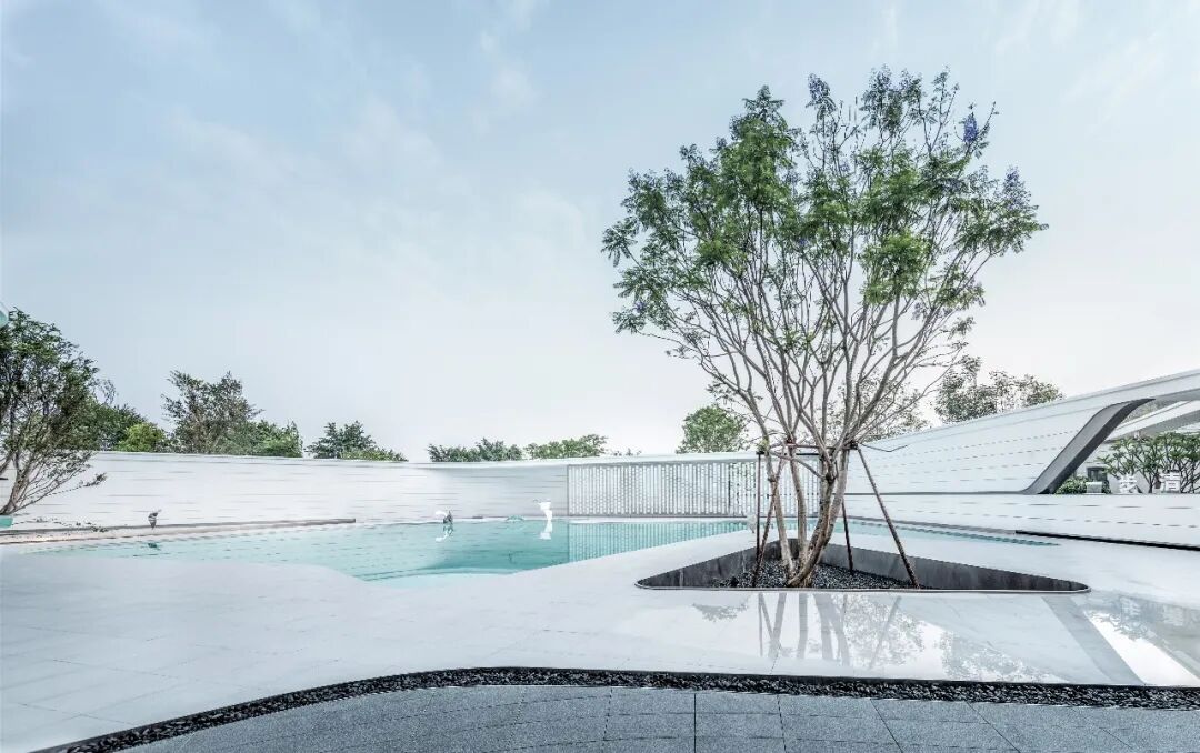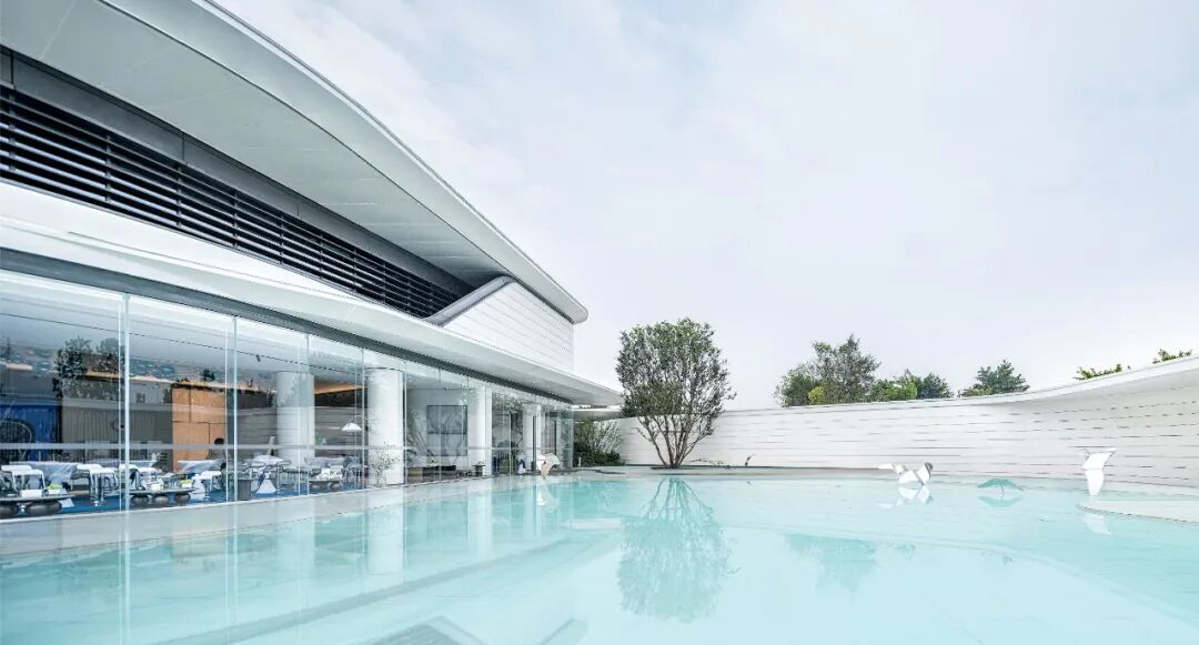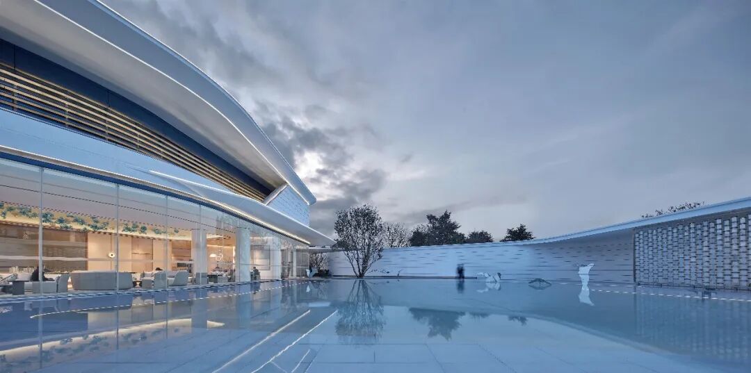 The architecture, landscape and interior style are highly unified, fully showing the inclusiveness of white color. A large amount of white space, a small amount of furnishings and the emphasis on space and light make the quiet atmosphere of the space more prominent, expressing the unique emotion belonging to the space. The architecture, plants and sky are reflected in the pure water, enhancing each other's beauty.